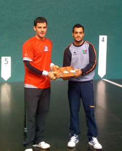 El frontón municipal de Balmaseda también ha sido escenario de una elección de material. En este caso han estado Díaz y Urrutikoetxea que vienen de batir a Olaizola I y Zubieta respectivamente en este campeonato del Cuatro y Medio.