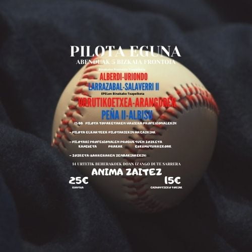 El Bizkaia Frontoia acogerá el próximo domingo a todos los clubes de pelota de Bizkaia para celebrar el Día de la Pelota. La apertura de puertas se realizará a las 15:00 horas y los/as jóvenes pelotaris, acompañados por un monitor o acompañante responsable, podrán pelotear en la cancha con los pelotaris que más tarde disputarán los partidos.