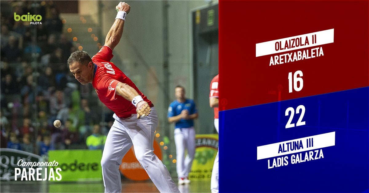 Azkenean, Altuna III – Ladis Galarza bikoteak bere bigarren puntua eskuratu du, eta Aretxabaleta – Olaizola II bikoteak garaipen bakarra.