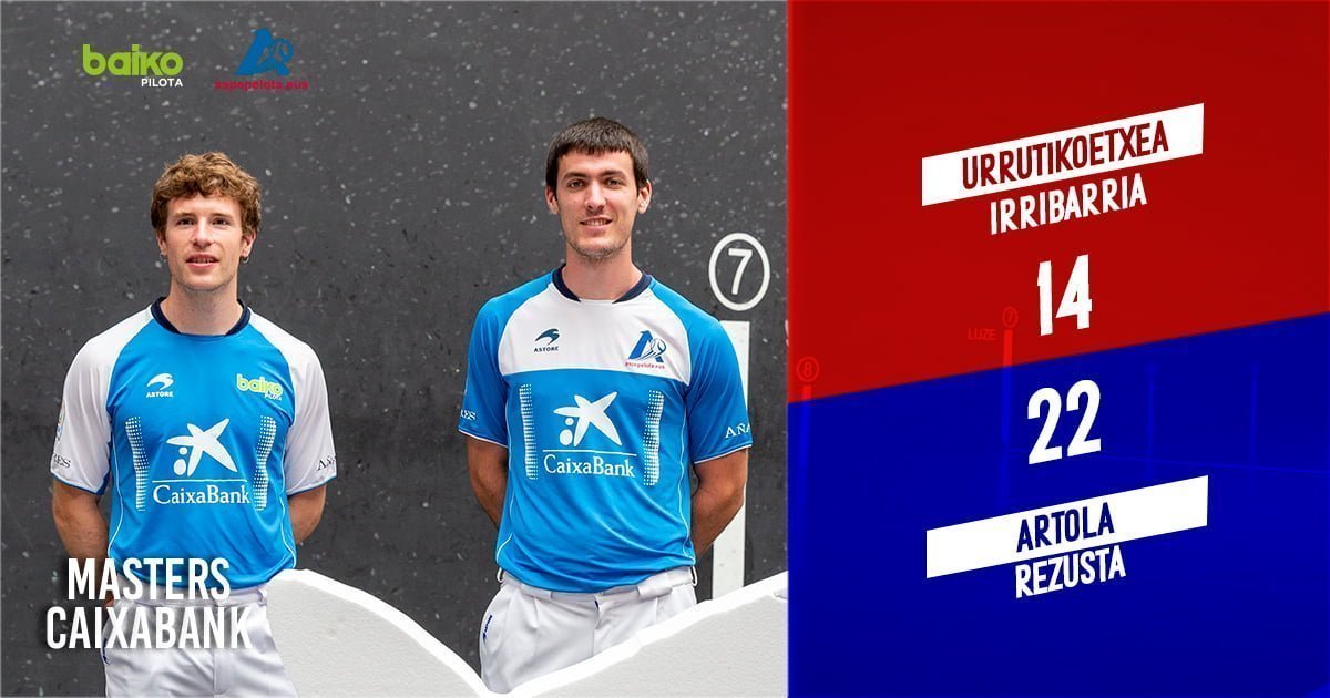 Bizkaiko pilotalekuan jokatu den Master CaixaBank txapelketako bigarren jardunaldian Artola – Rezusta nagusitu dira. Partida berdinduta hasi zen, intentsitate eta erritmo altua nagusi zelarik. Hala ere, 4-4ko berdinketaren ondoren, urdinek abantaila txiki bat hartu zuten markagailuan 4-9koa jarriz. Urrutikoetxeak eta Irribarriak aldea murriztu zuten, baina atsedenaldira 7 eta 12 galduz iritsi ziren.
