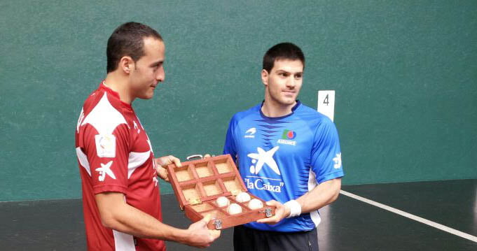 El pelotari de Aspe ha separado dos pelotas de 106 y 104,9 gr. El zaguero de Uharte ha hecho lo propio con otras dos de 105.7 y 106,6 gramos.