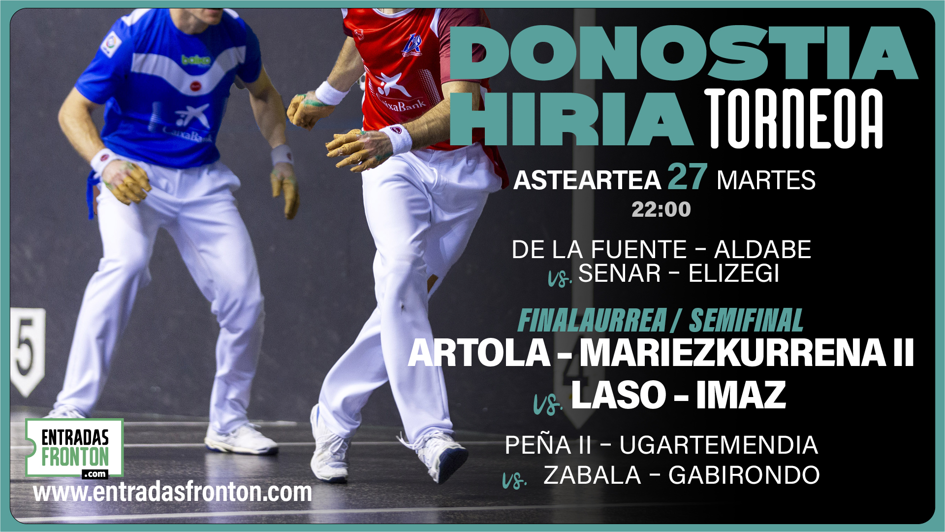 Gaur, abuztuak 27, 22:00etatik aurrera, Donostia hiria Torneoko finalerdia