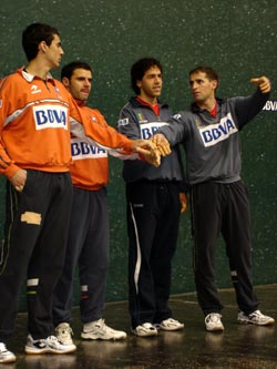 Eguerdian Olaizola I.ak-Beloki eta Xala-Eulatek bat egin dute Gasteizko Ogeta pilotalekuan datorren igandean jokatuko duten Binakako txapelketako finalerako pilotak aukeratzeko.