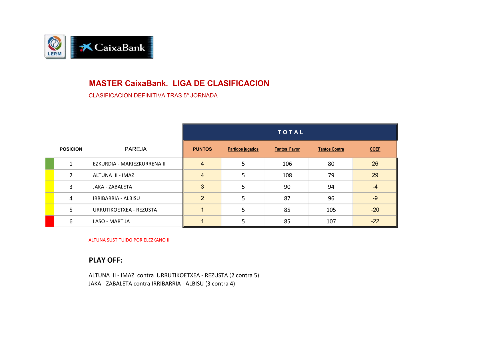 Horrela amaitu da CaixaBank Masterseko sailkapen liga