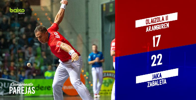 Jaka-Zabaleta liderrek errazago zuten arren, partida zaila izan dute Olaizola II.a-Arangurenen aurka. Partida parekatua izan da, eta Aspeko jokalarien sendotasunari eta segurtasunari esker bukatu da.
