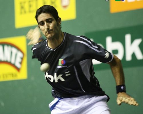 Asegarceko pilotariak erabat behartuta eta tokitik kanpo eduki du Txantreako aurrelaria, ezker hormara bidalita eta bortitzak izan diren pilotakaden bidez.