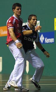 Arratsaldeko lauretan zuten hitzordua Aimar Olaizola eta Sebastian Gonzalezek pilotak bereizteko eta hantxe bildu dira larunbateko partiduko aurrekitaldia burutzeko. Olaizola II.ak 103 eta 103,8 gramotako pilotak hartu ditu, bat latza eta beste bat biziagoa. Aimarrek tentuz eta astiro aritu da hautatzeko orduan. Gonzalezek 104,8 eta 102,8 pisukoak bereiztu ditu biak erraz mugitzekoak. Ez da inolako arazorik izan.