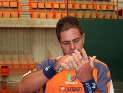 Aimar Olaizolak hurrengo larunbatean Labriten egingo duen berragerpena gauzatu baino azkeneko entrenamendua burutu du Tolosako Beotibar pilotalekuan ordu t´ erdiz Asegarceko kirol zuzendaria den Salbador Bergarak gainbegiratuta.