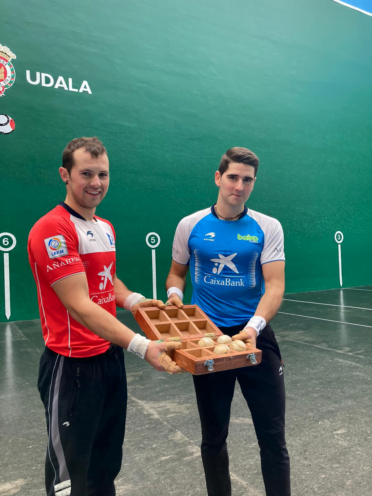 Lasarte-Oriako aurrelariak 104 (3) g eta 106,3 (4) gramoko pilota bi hartu ditu saskitik. Mallabiarrak 104,4 (1) g eta 104,6 (2) gramoko beste bi aukeratu ditu.