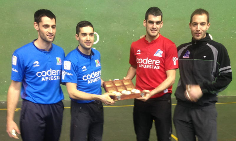 Joseba y David han elegido tres pelotas de 106,7 106,9 y 106,6 gramos y sus rivales han hecho lo propio con otras tres de 106,2 106,2 y 105,6 gramos.