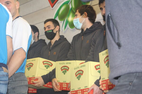 Baikoko pilotariek 1500 botila oliba-olio birjin estra jaso dituzte gaur goizean Urzanteren eskutik, joan den uztailaren 10ean Iruñean jokatutako Urzante erronkaren saria emateko ekitaldian.