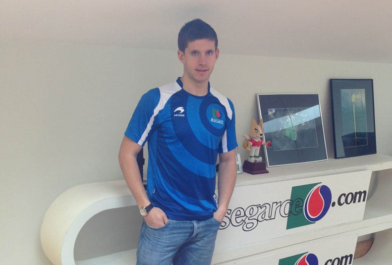 Este mediodía Mikel Idoate ha visitado las oficinas de Asegarce para firmar el contrato que le unirá a esta empresa durante las dos próximas temporadas.
