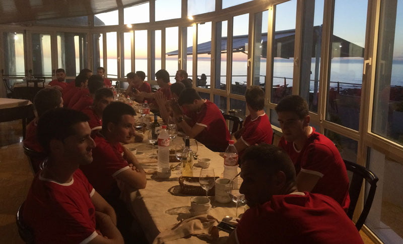 Agirre, Laso, Ladis Galarza y el gerente Rafa Etxeberria han optado por disputar un partido de paddle y el resto ha disfrutado de la tertulia en la terraza del hotel o un paseo por el pueblo.