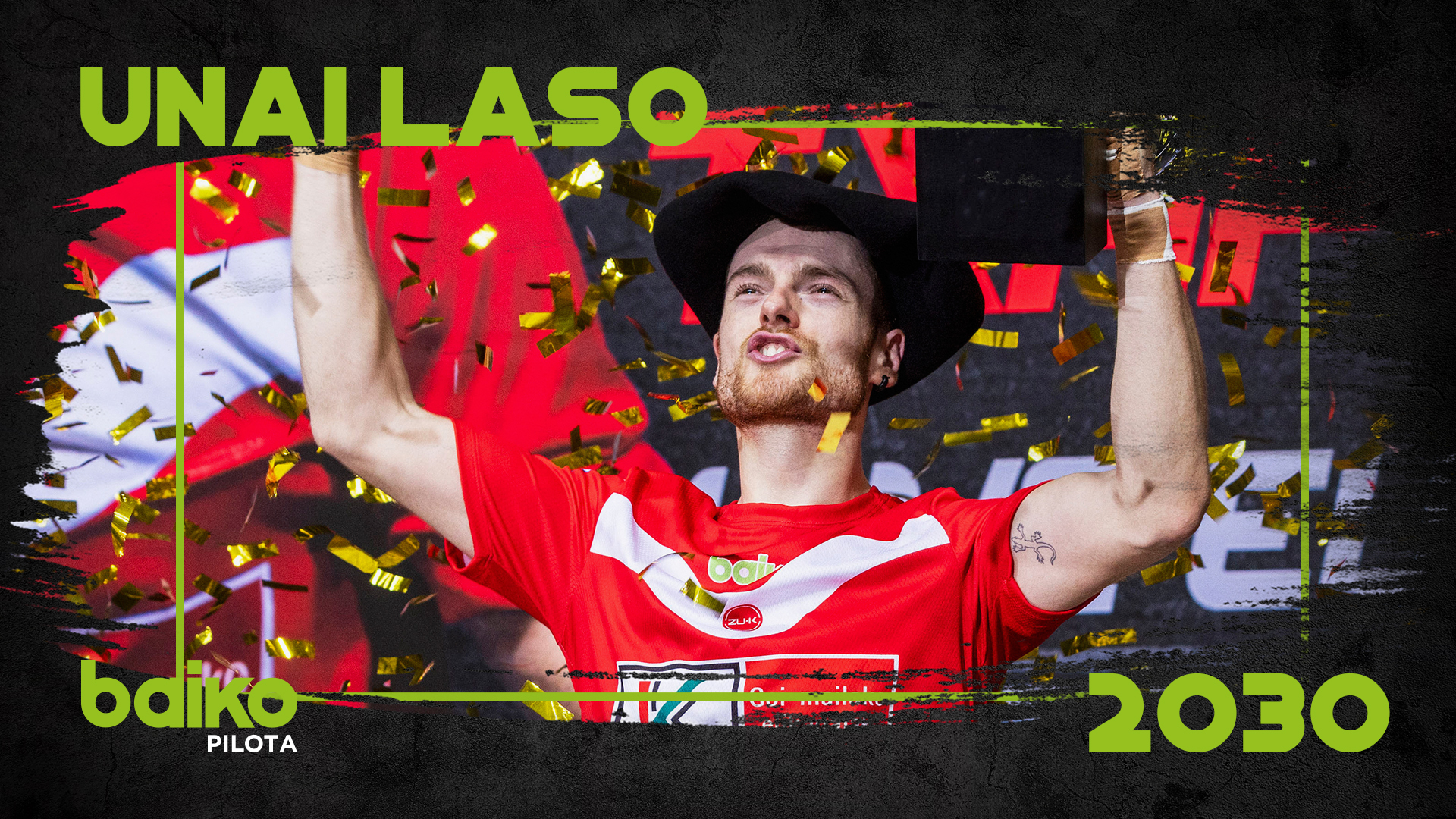 Unai Laso firma así para seis años hasta diciembre del 2030. Desde su debut en el 2016 Laso ha disputado seis finales, repartidas en las tres modalidades, y ha conquistado dos txapelas. En el 2022 se hizo con el Campeonato Manomanista tras superar a Ezkurdia en la final. Y en el 2024 Laso ganó una emocionante y disputada final a P.Etxeberria en el Campeonato 4 1/2 Eusko Label.