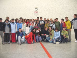 Los jóvenes tuvieron la oportunidad de ver, tocar y hablar con los pelotaris que salen en la televisión y observar de cerca como se ponen los tacos, como calientan antes del entrenamiento y como ensayan en el frontón a las órdenes de los entrenadores.