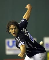 Asier Olaizola ha sacado al campeón manomanista Bengoetxea VI del campeonato del cuatro y medio de San Fermín tras conseguir favorable 22-20 en el encuentro de cuartos de final disputado en el frontón Gorondabeko de Sondika. El partido ha estado marcado por el intenso calor que llenaba la cancha y que en el tramo final le ha pasado factura al pelotari de Leitza.