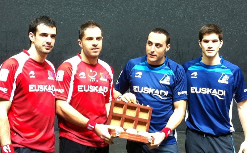 Berasaluze VIII y Albisu, y Ezkurdia y Zubieta han acudido esta tarde al frontón de Urduliz para escoger las pelotas para el partido del Campeonato de Parejas que disputarán este viernes.