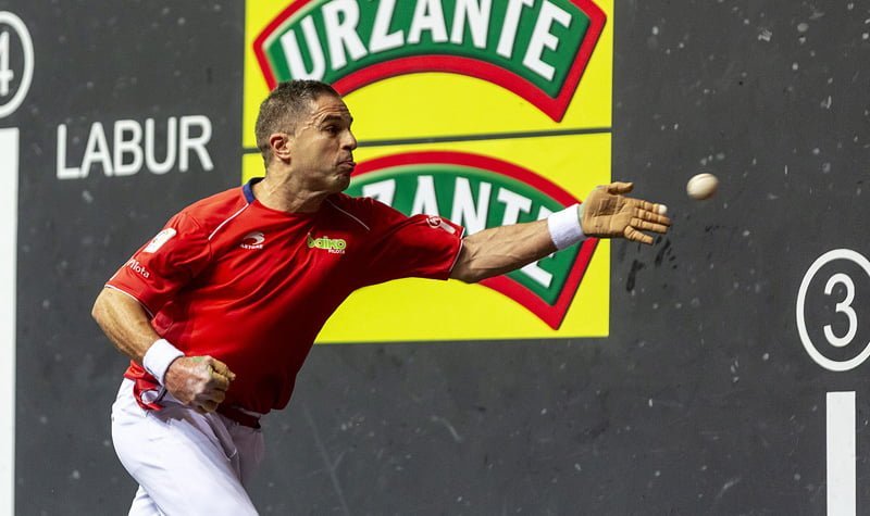 No será un partido cualquiera. Olaizola II ha puesto en pie en varias ocasiones a los aficionados ante el manual de pelota que ha desplegado. Con 39 años no se puede defender más y de propina llevarse una colección de 14 tantos hechos en jugada.