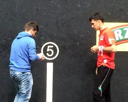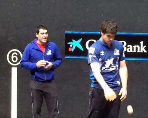 Iker Irribarria no ha optado por esas pelotas y ha elegido dos cueros con salida de frontis y moderados en su trayectoria por el suelo.